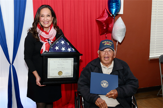 To start the day, Congresswoman De La Cruz hosted a Congressional Record Ceremony to honor the service of World War II Veteran and Texas-native Francisco Ybanez. In 2024, De La Cruz honored Mr. Ybanez's life of service, sacrifice, and dedication to the Alice community on the House floor. Read the full Congressional Record here.
